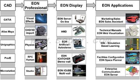 - 企業還可以用EON軟件工具將復本發布至PC機、CD、互聯網、或立體沉浸式大屏幕進行顯示
