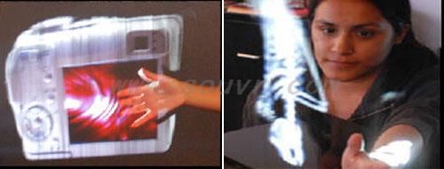Heliodisplay工作時(shí),最好將硬件設(shè)備隱藏于家具等設(shè)施中,這樣觀眾只能看到投影圖像,而看不到光源。例如,您可以在桌子或其它平面上削刻出一個(gè)凹槽用于放置光源設(shè)備,同時(shí)留一個(gè)孔洞用于投影。