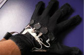 藍牙數據傳感手套設備可以監測真人的手指動作,將監測到的數據無線傳輸到3D顯示軟件中的3D動畫人物手指上。