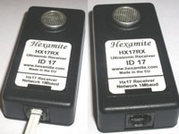 HX17T是一款超聲波發射器,可以定期發射超聲波辨識信號。傳輸觸發頻率可以在設備正面底孔處選擇。用戶可以使用牙簽或其他類似工具點觸按鈕從而選擇觸發頻率。配有LED指示燈可以顯示傳輸速率。用戶按下底部按鈕后,LED燈會閃爍,如果用戶持續按住底部按鈕,LED燈的閃爍速度會加快,而LED燈每閃爍一次,超聲波ID都會傳送一次。用戶能夠聽到設備上超聲波發射器的嘀嗒傳輸音。Hexamite提供了少量Hx17超聲波標簽供用戶使用。