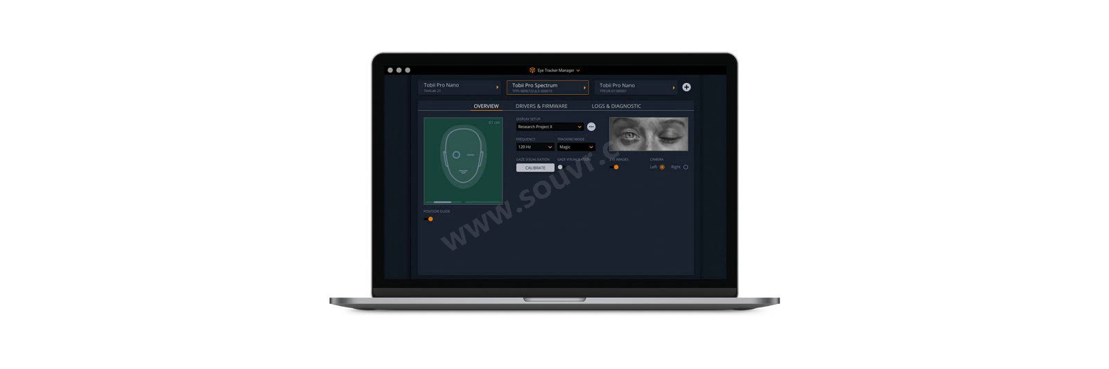 一款輔助管理屏幕式眼動儀設備的免費軟件。此工具可幫助眼動儀與屏幕結合或作為獨立模塊使用時的硬件設置,并具有用戶校準和輔助故障排查工具。如果眼動儀型號支持,也可以用此工具更改眼動儀的設置或升級固件。